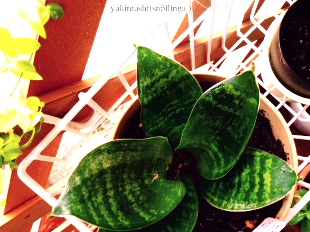 上の画像は、以前100円ショップで購入したサンスベリアです。